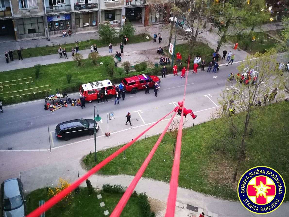 Prezentirana je i specifična oprema za spašavanje sa kojom raspolaže Gorska služba Spašavanja - stanica Sarajevo, a vježba je izvedena u Radićevoj ulici u centru Sarajeva.