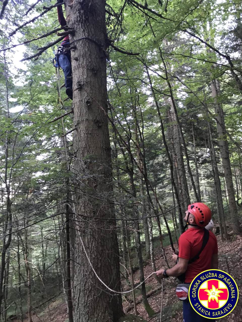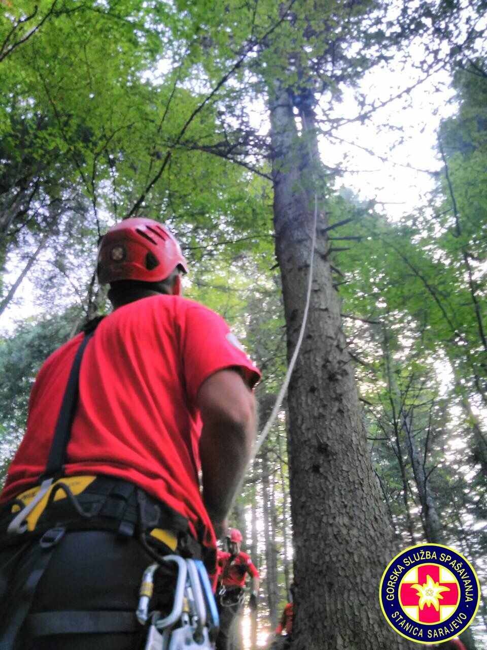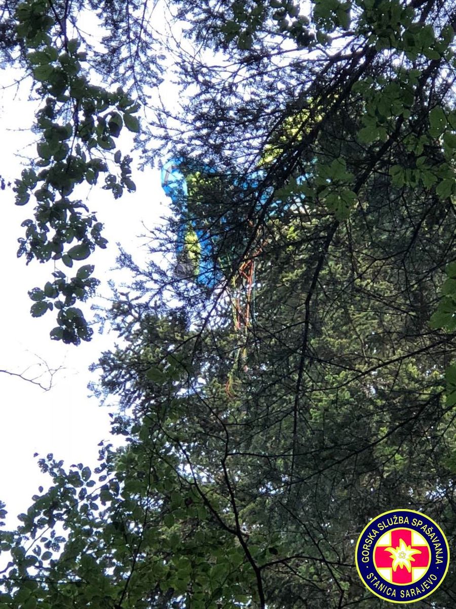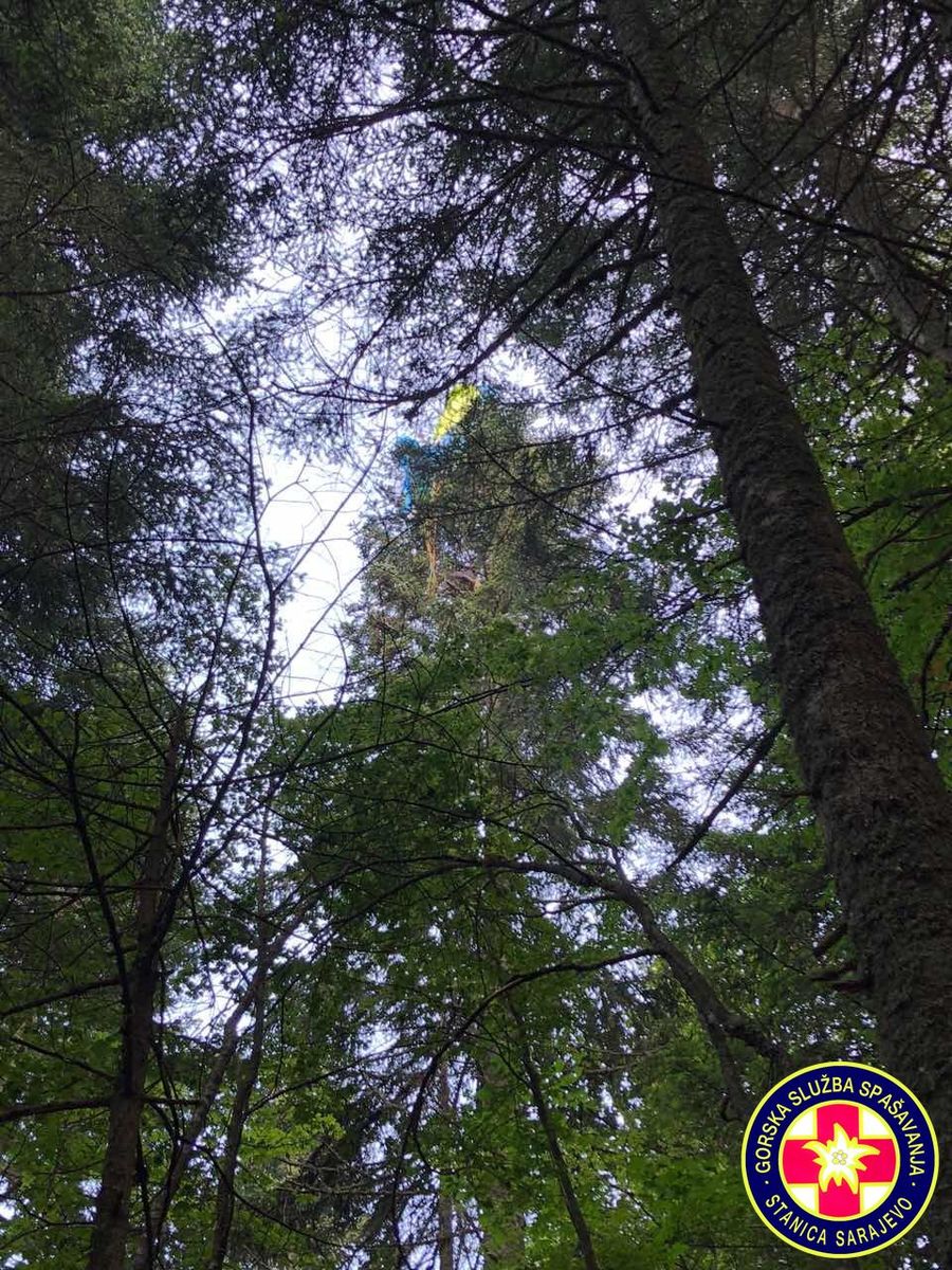 16:55h, Prva ekipa je stigla na mjesto nesreće. Paraglejder je zakačen na stablo na visini od cca. 30 metara,