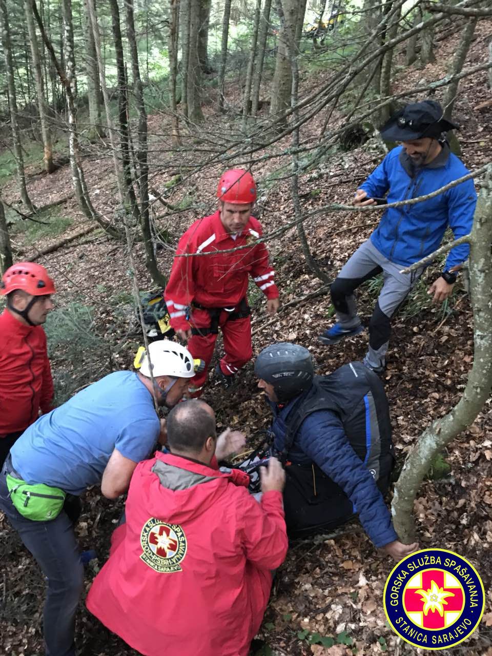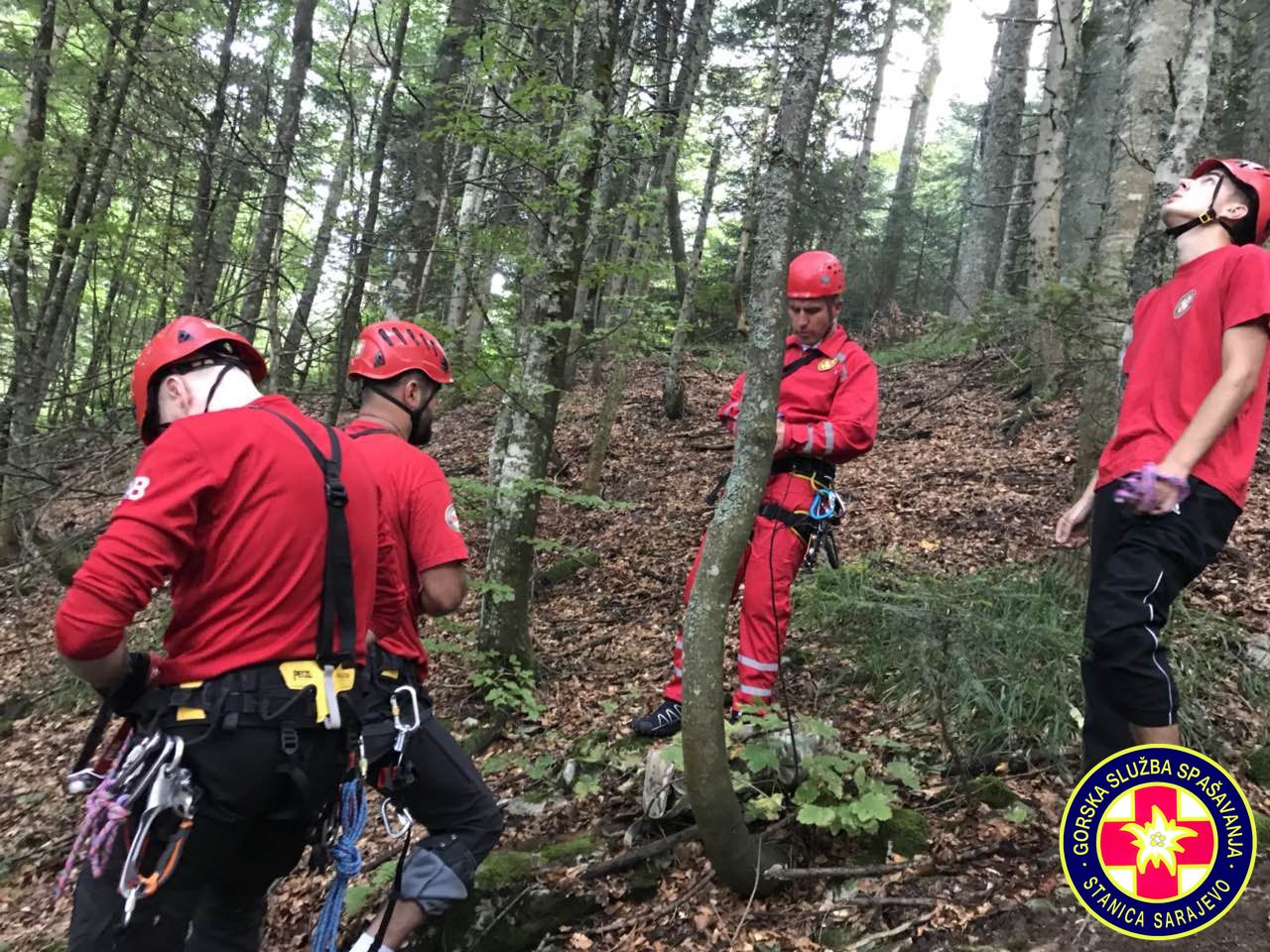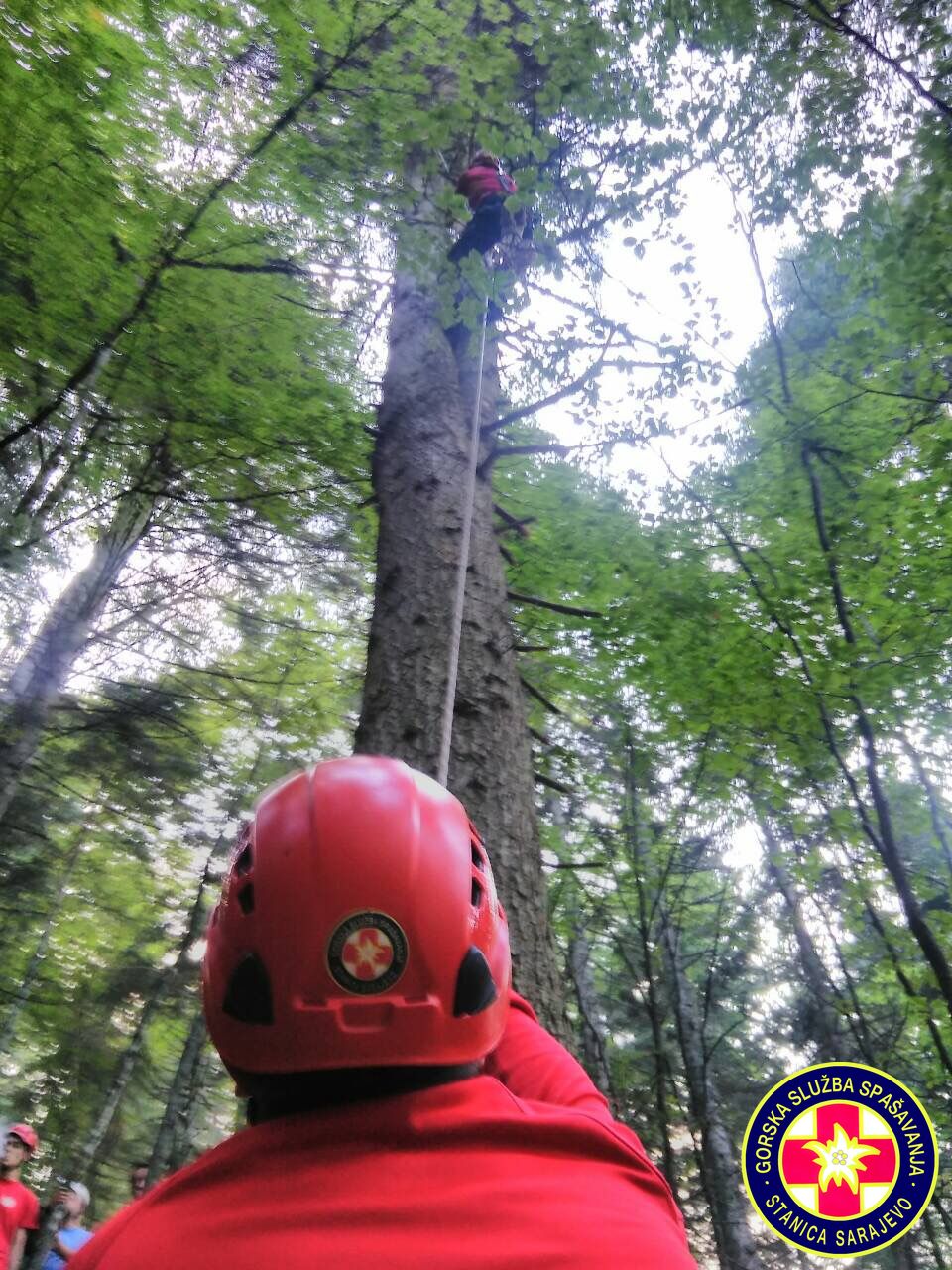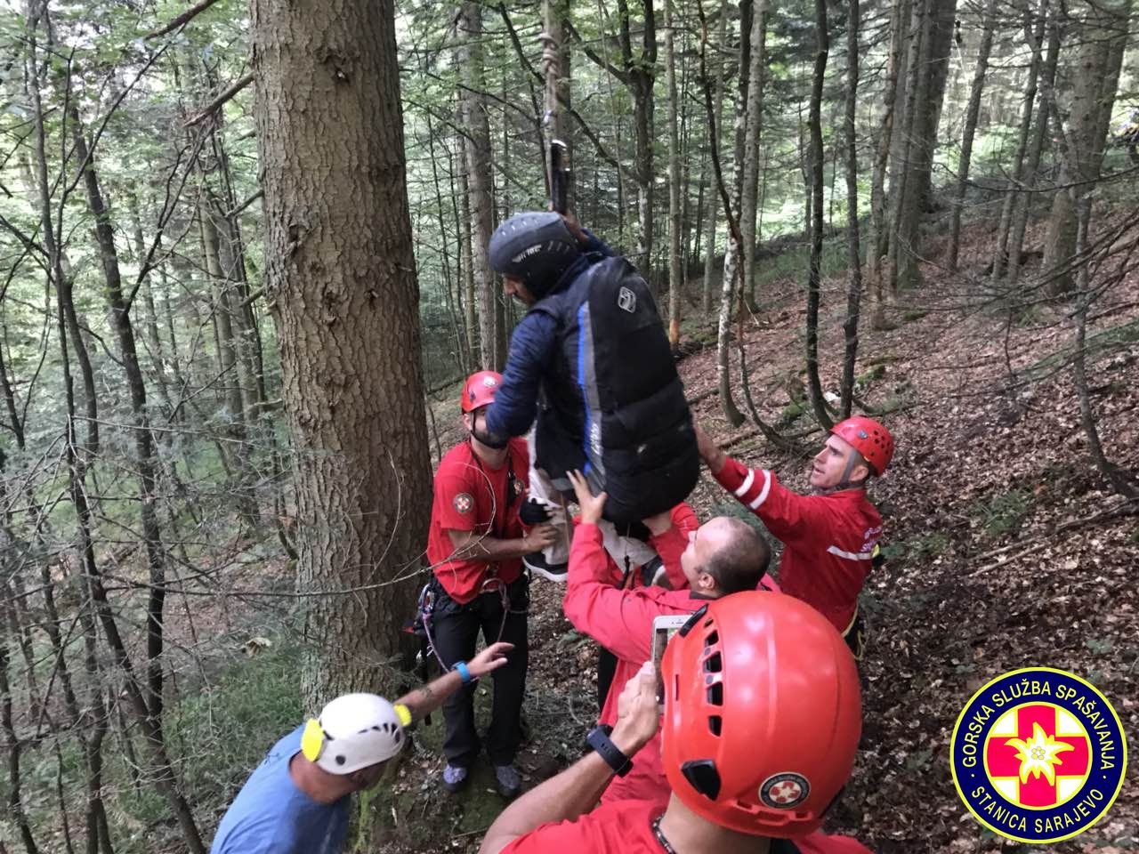 16:55h, Prva ekipa je stigla na mjesto nesreće. Paraglejder je zakačen na stablo na visini od cca. 30 metara,