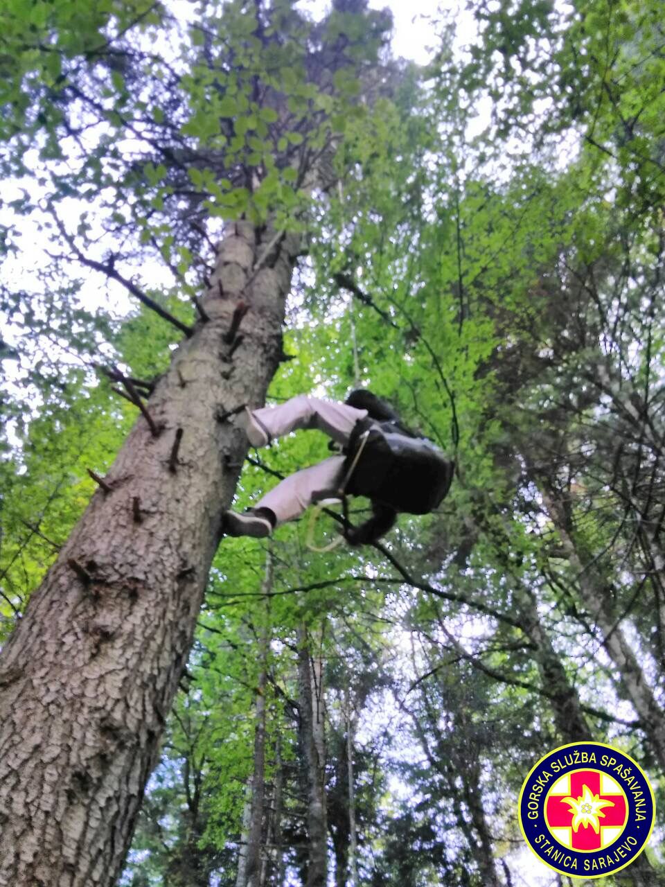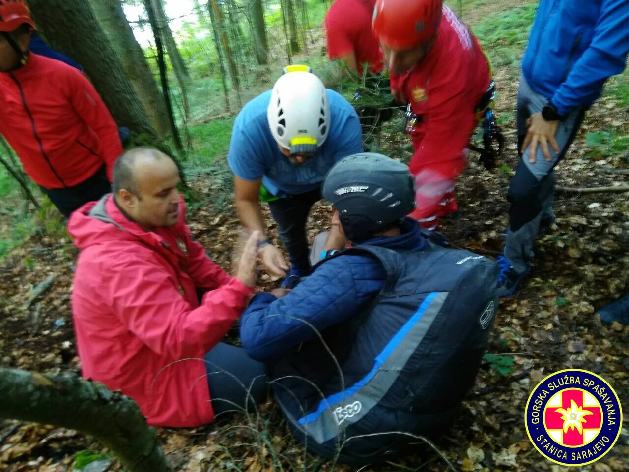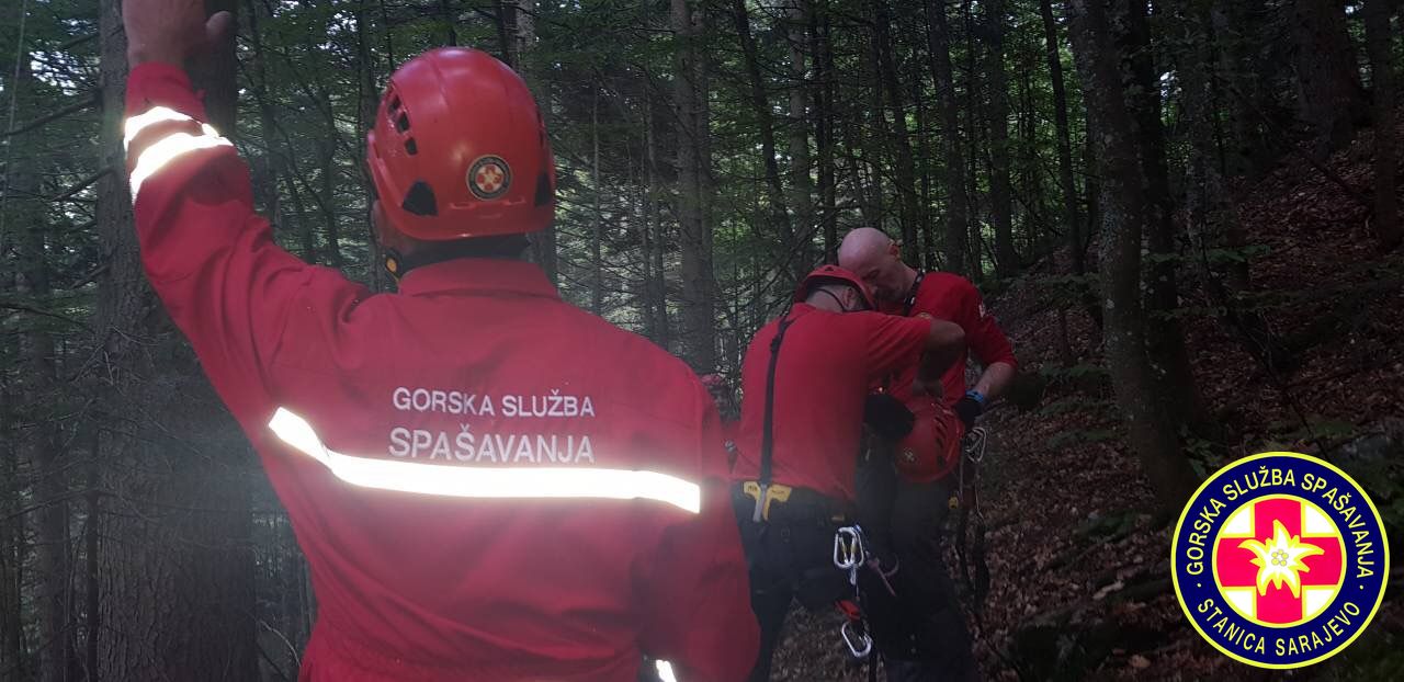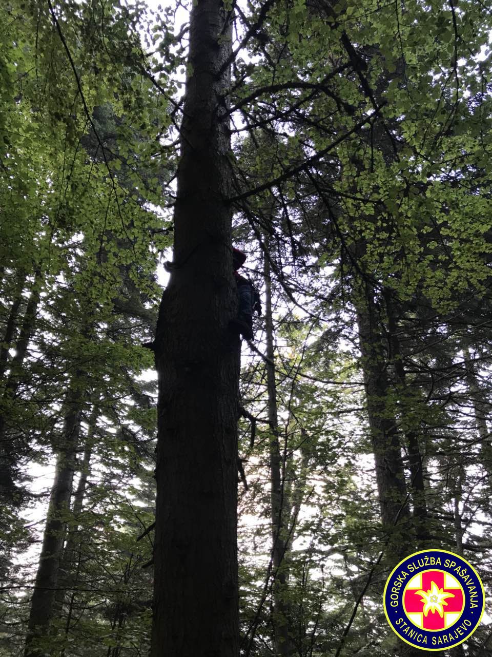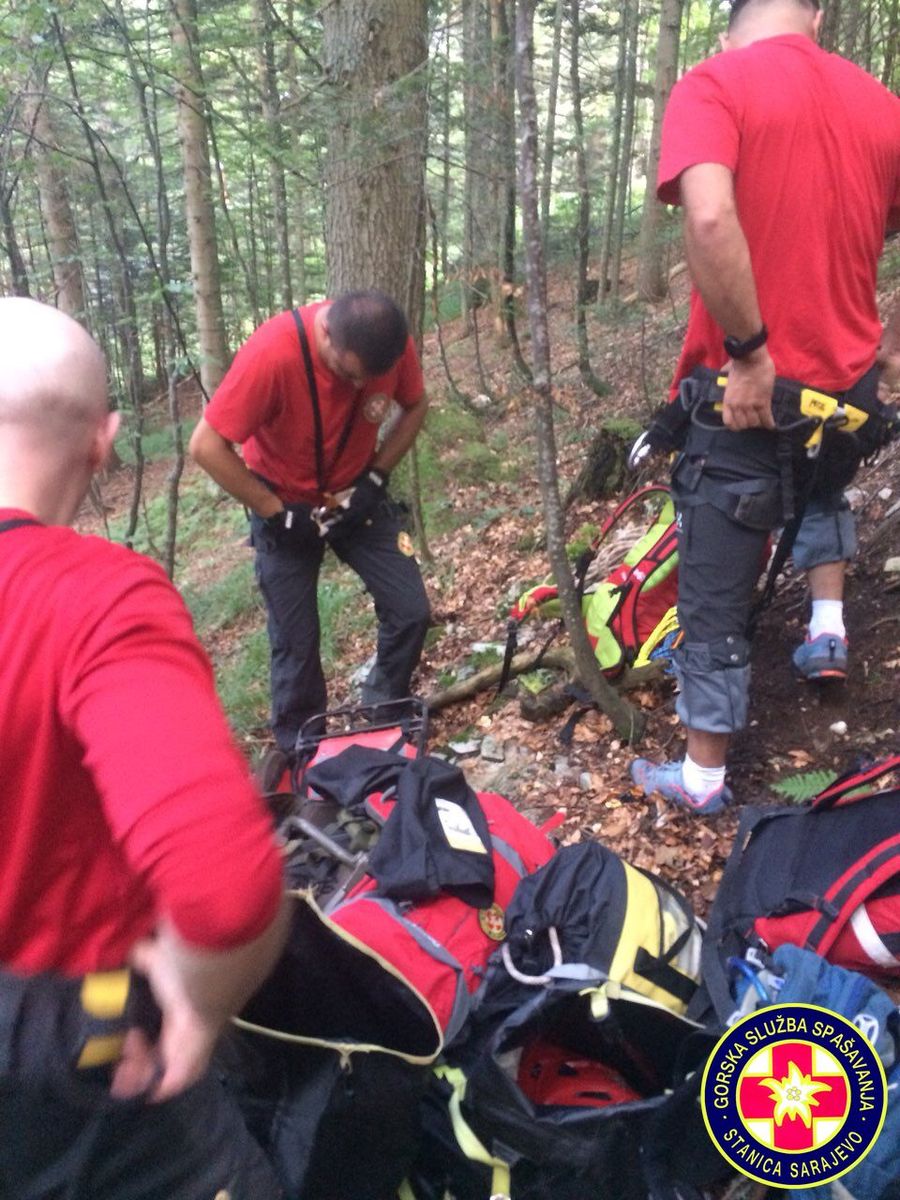 16:55h, Prva ekipa je stigla na mjesto nesreće. Paraglejder je zakačen na stablo na visini od cca. 30 metara,