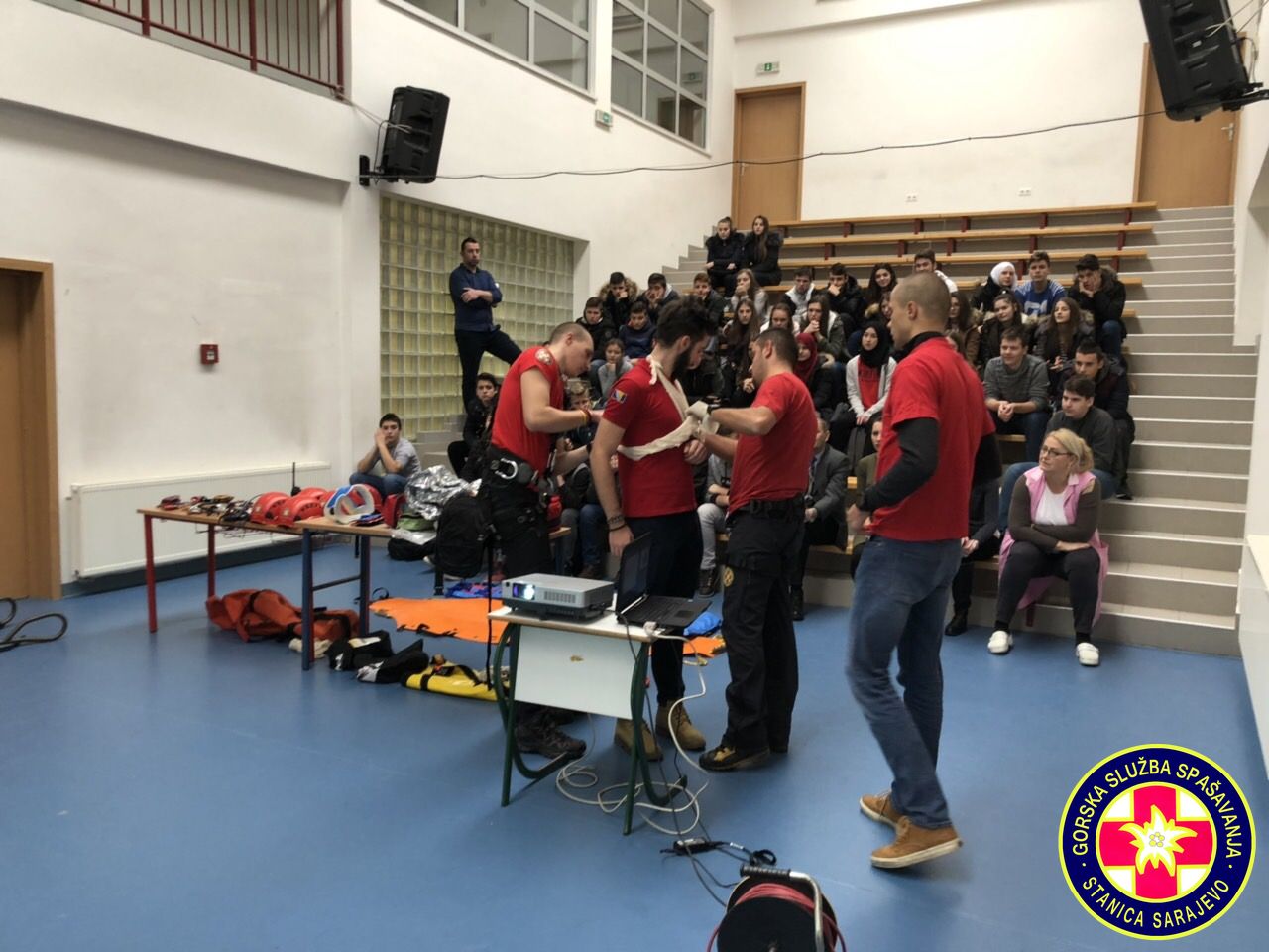 Tema je bila prva pomoć te je i praktično pokazano djelovanje naše službe kroz primjere. Ovo je još jedan vid saradnje Gorske Službe Spašavanja, stanica Sarajevo sa školama u kantonu Sarajevo i preventivnog djelovanja.
